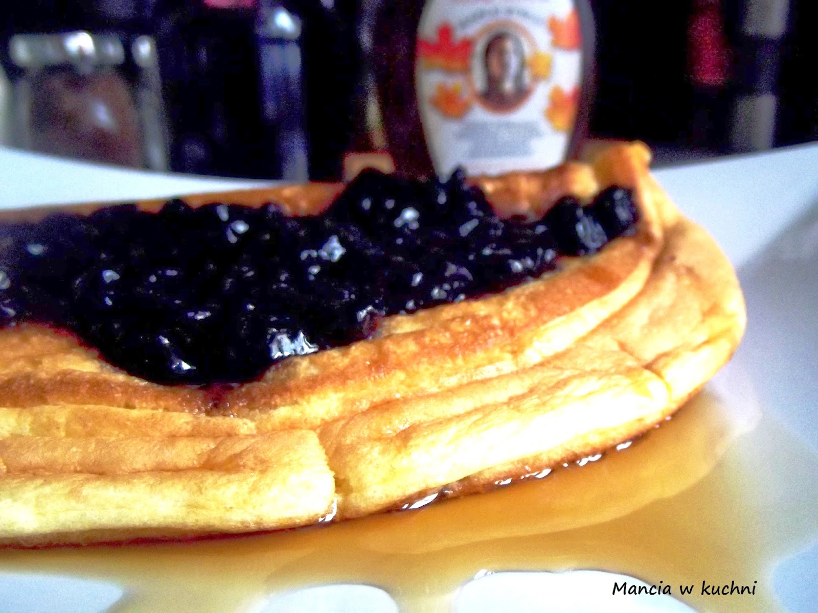 2. Ciasto wylewamy na rozgrzaną patelnię z dodatkiem tłuszczu, podsmażamy, a następnie łopatką składamy omleta w pół. Smażymy ok 3 minut na małym ogniu. Po tym czasie obracamy omleta na drogą stronę i smażymy następne 3 minutki. Podajemy z ulubionymi dodatkami (u mnie zaprawione jagódki i syrop klonowy).